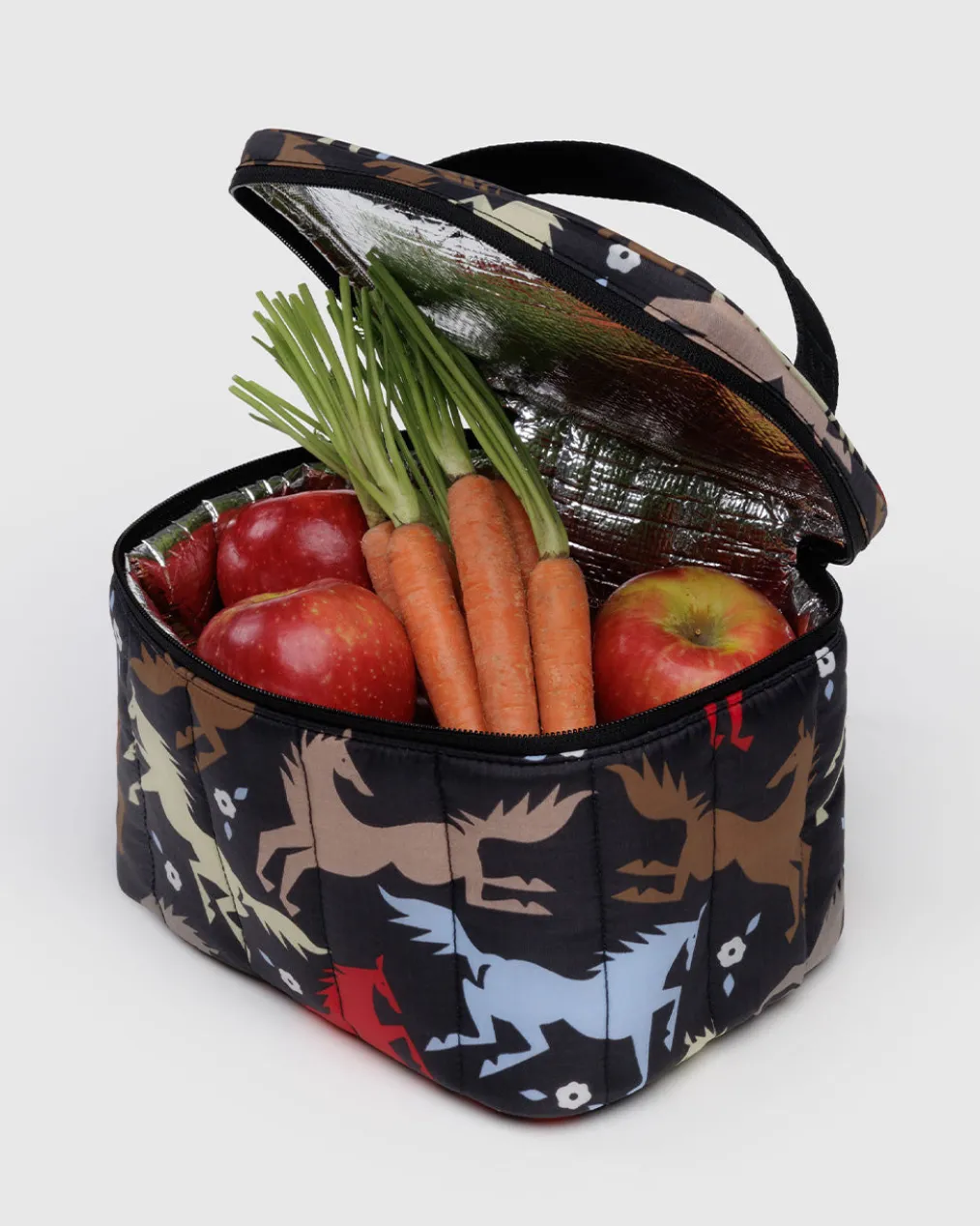 The chillest place for all your lunching and snacking needs. From Baggu, this puffy bag has a zip closure, top handle, and insulated interior.