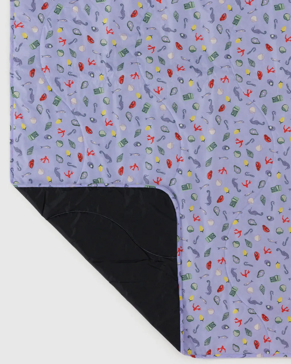 A quilted nylon picnic blanket with a velcroclosure so you can roll it up and bring it anywhere.