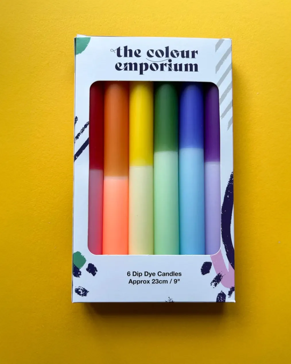 These candles make the perfect gift for a stylish host, and come beautifully wrapped for the purpose. Each of the candles is hand dipped in the Surrey Hills and every set is unique – the bright colour combination is always the same but the patternmayvary ever so slightly.