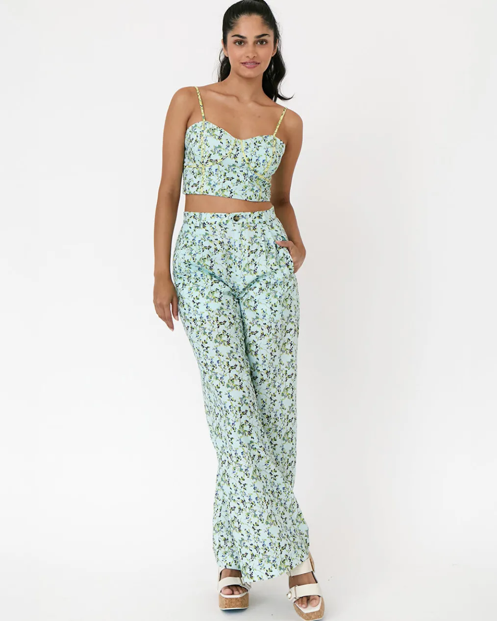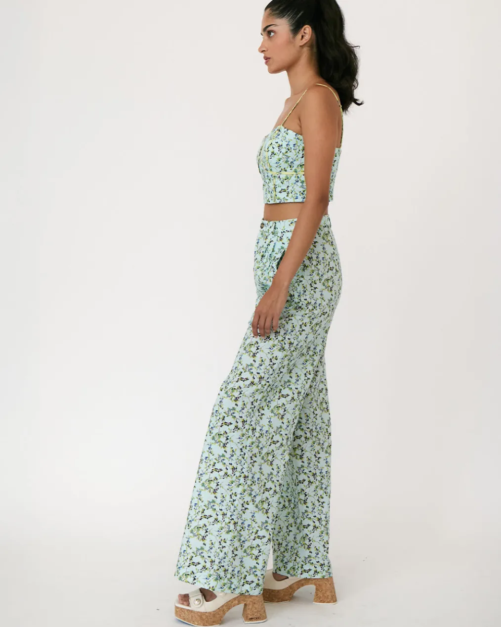 - Pleated high-rise wide leg pant