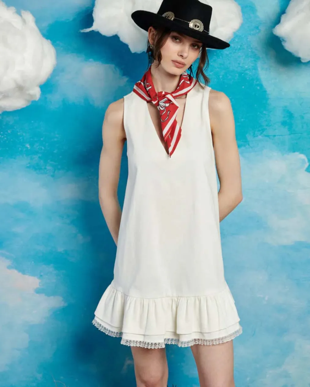 Unleash your inner outlaw with Sister Jane’s Sheriff Mini Dress, a versatile staple for your summer wardrobe. Crafted from a structured woven fabric in classic white, its loose fit offers comfort and style in equal measure. Detailed with a layered hem featuring lace edge trim, it exudes a touch of vintage charm with a modern twist. Perfect for layering or styling however you want, this mini dress is a versatile must-have that promises to elevate any ensemble with effortless elegance.
