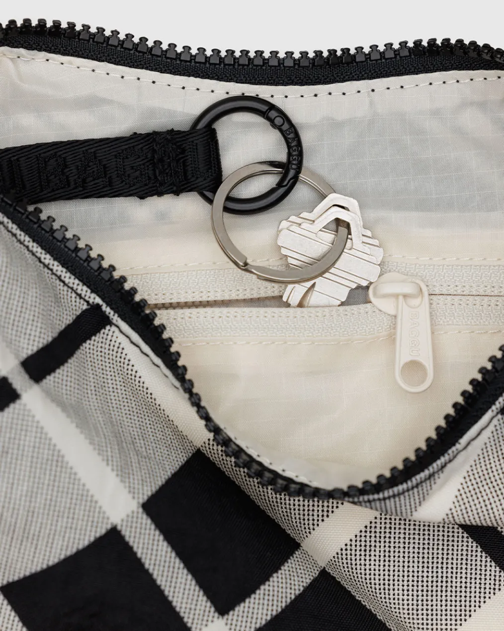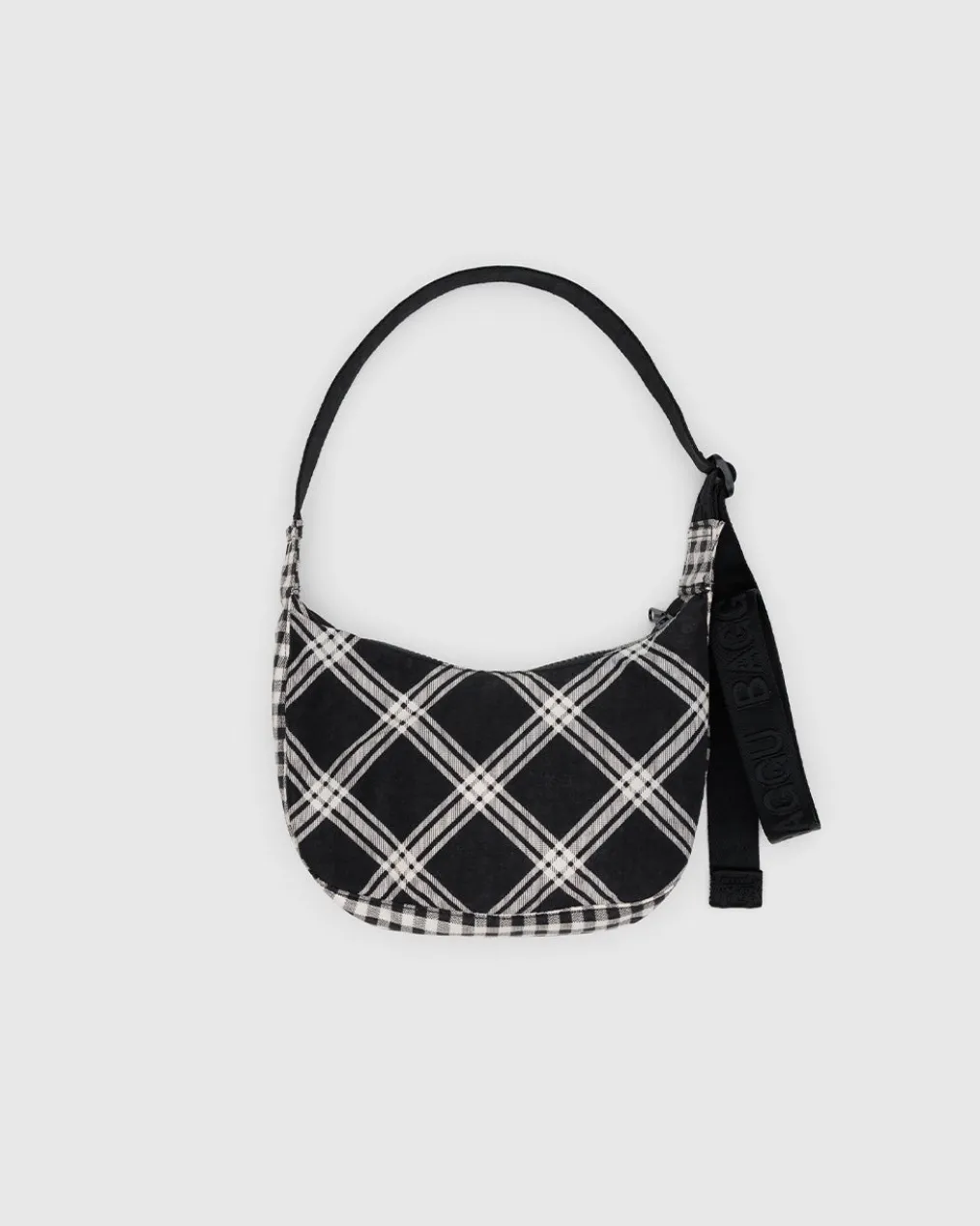 Small Nylon Crescent Bag w/ Key Leash – Mixed Plaid