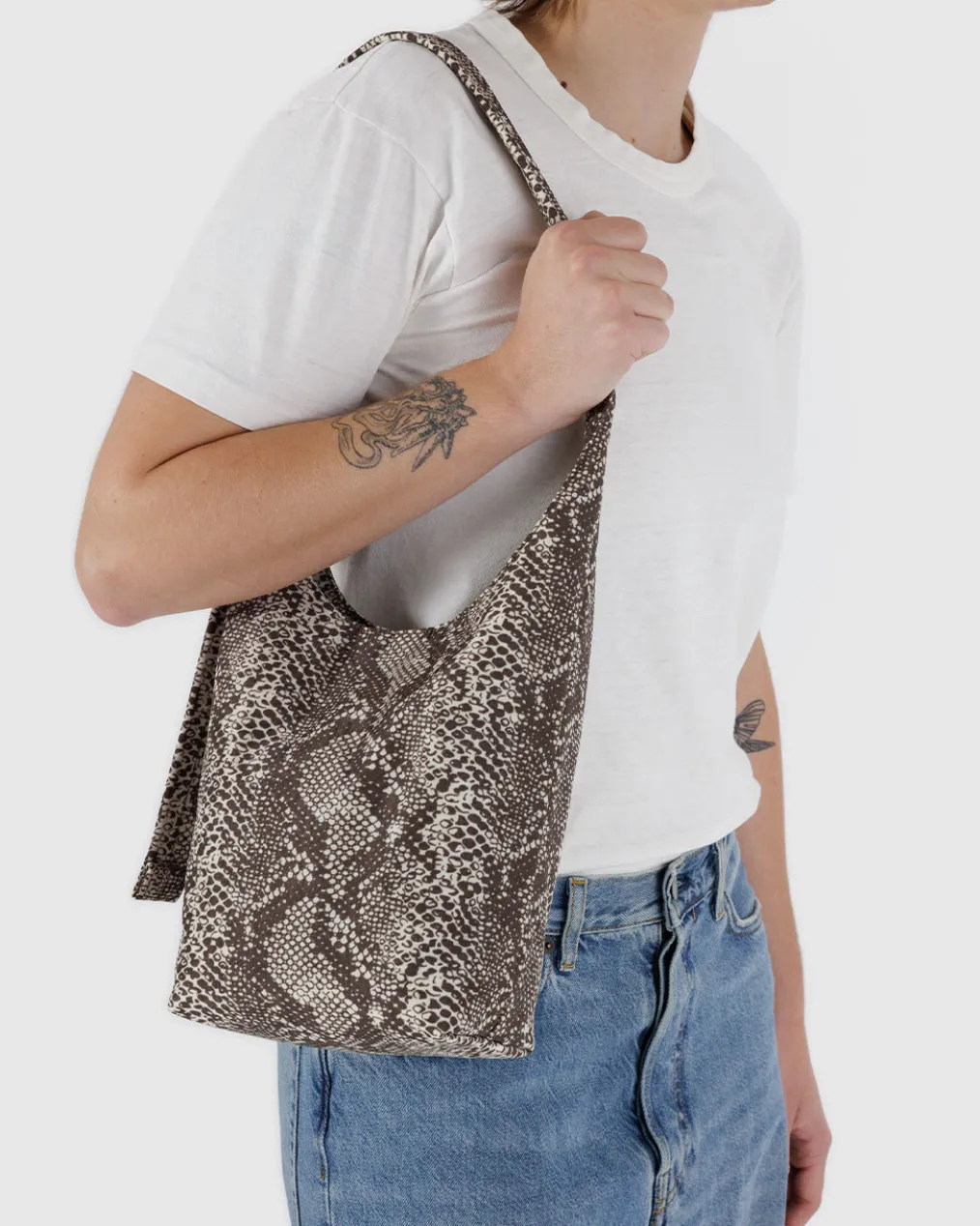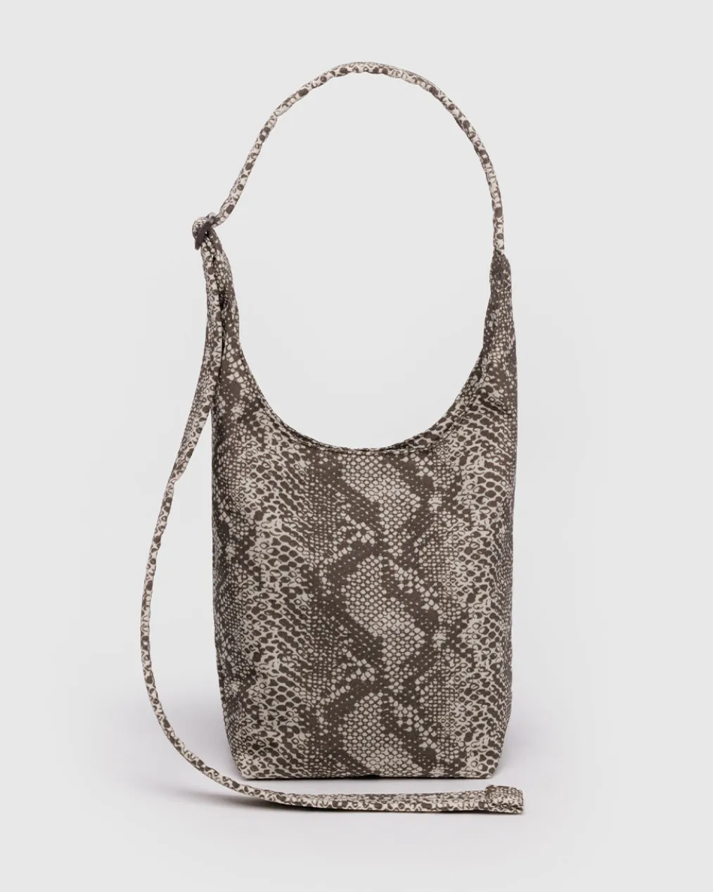 A slouchy, softly structured nylon bag with an adjustable strap. Interior zip pocket with a magnetic closure.