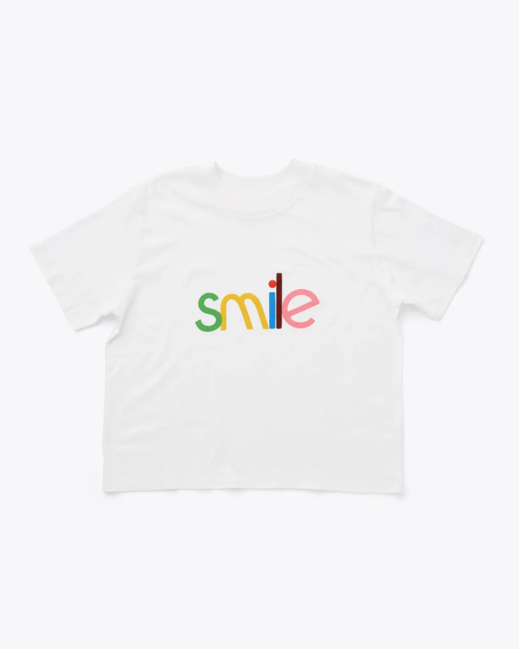 Pairs well with a smile on your face. This t-shirt has a relaxed, boxy fit, short sleeves, and slightly cropped length.