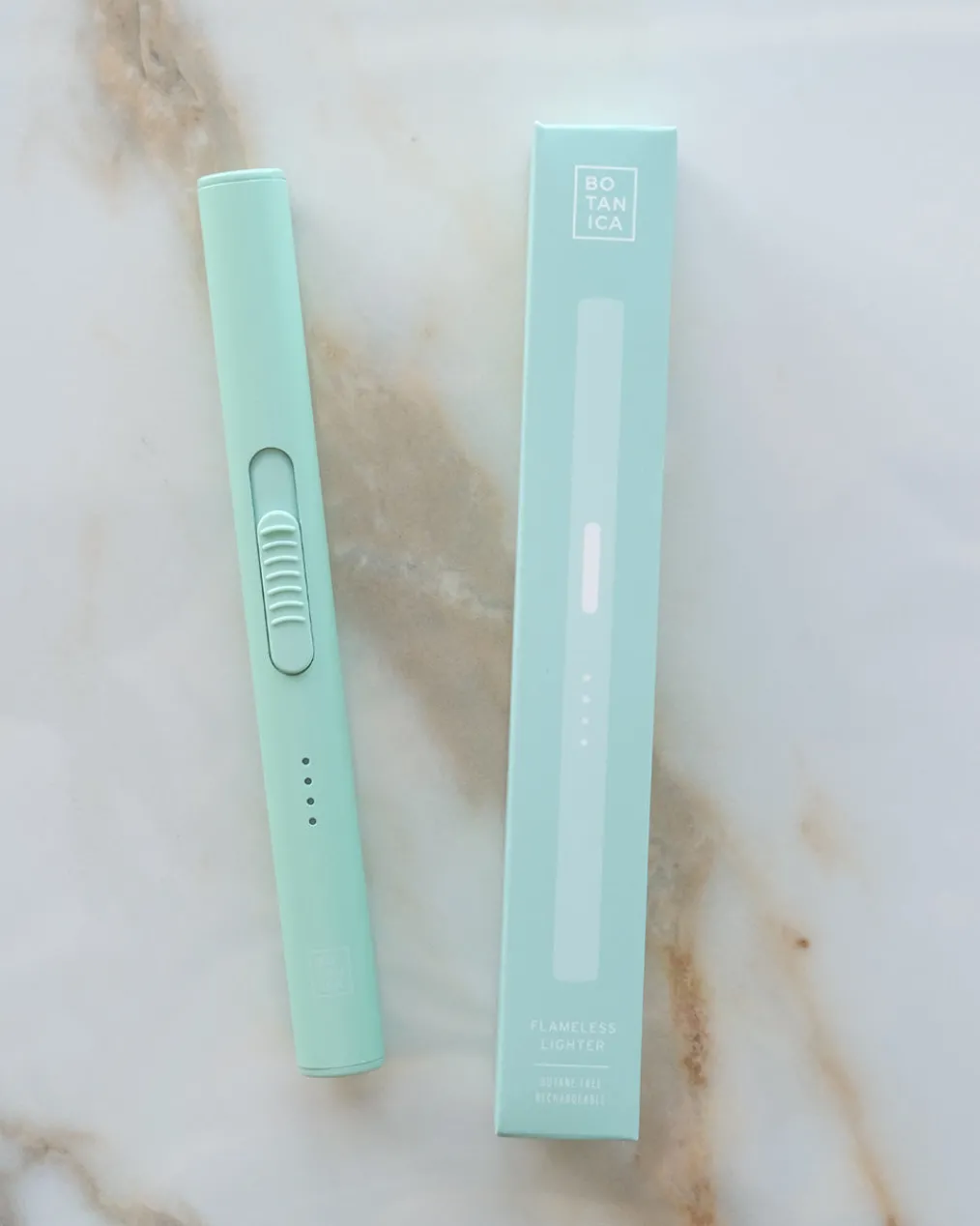 Botanica’s Flameless Lighters utilize single ARC technology, making for a clean, butane-free ignition for every candle lighting (and more!) Each Flameless Lighters is handily rechargeable through a convenient USB port. A safety switch is included to make accidental lights a non-issue. Packed in a colorful gift box with a 5″ USB-C charging cable, these are a thoughtful & creative addition to a gifted candle, and a must-have around your own home.