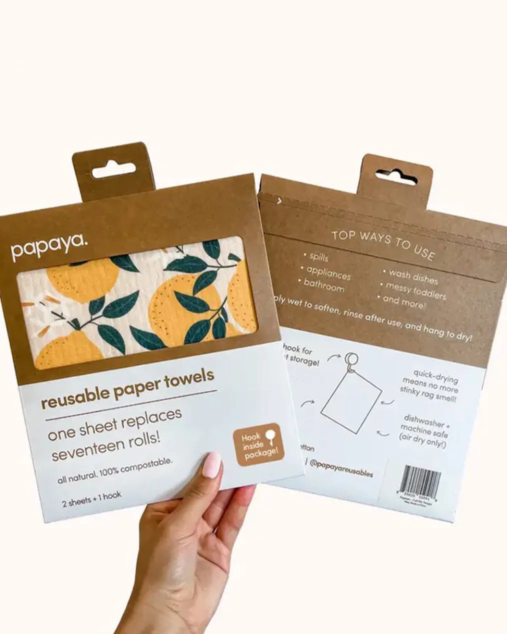 Regular paper towels? Wasteful. Sponges? Full of bacteria. Dish towels? Barely absorbent. These cloths by Papaya are reusable, antibacterial, and absorb 20x their weight in liquid! You’ll get a set of two and one hanging hook.