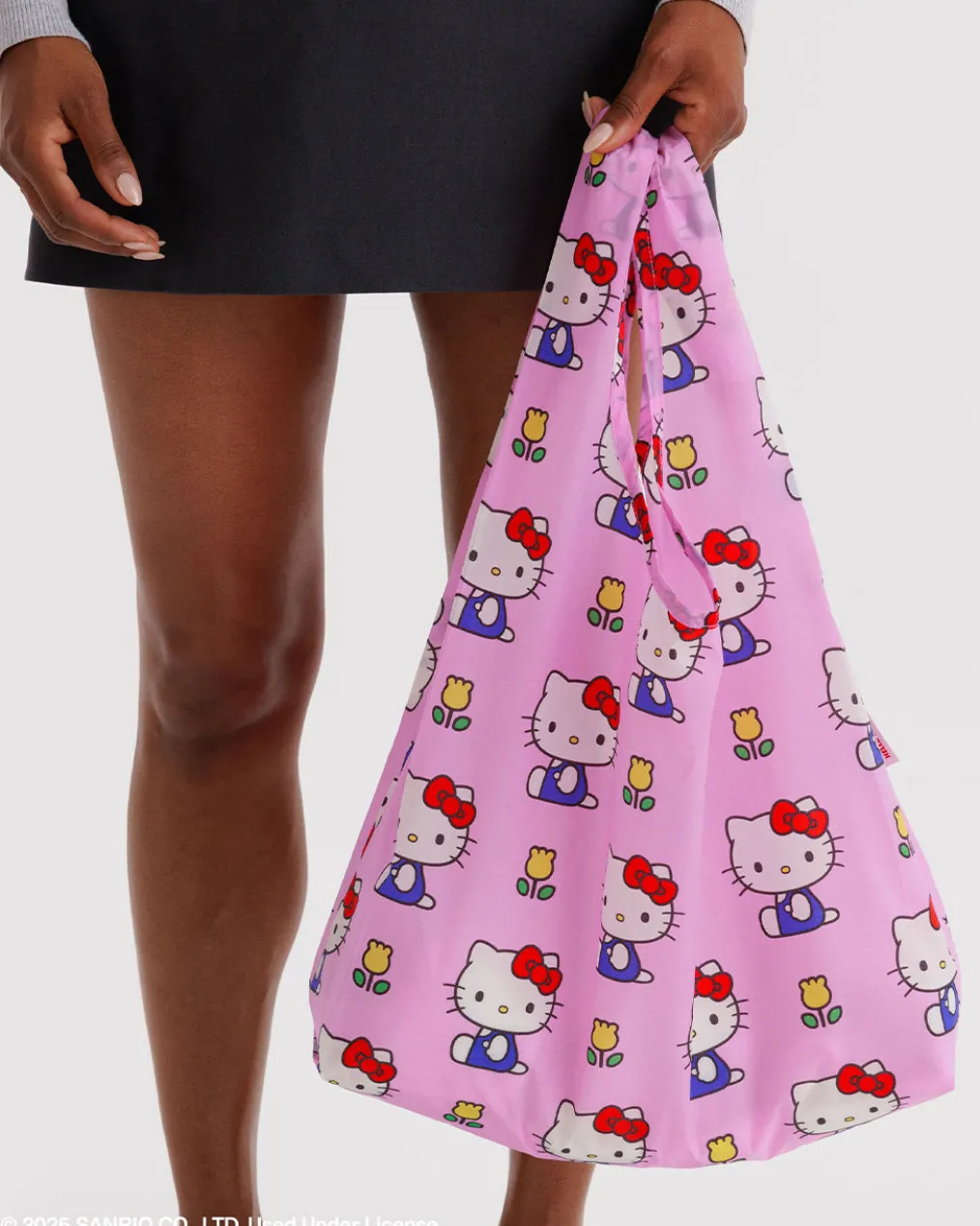Q: What is super lightweight, can hold 50 lbs., and has a fun print? A: This bag from Baggu! Seriously, it can hold fifty pounds. That’s like two and a half watermelons. (FYI: We looked that up. We didn’t know a watermelon’s weight offhand.)