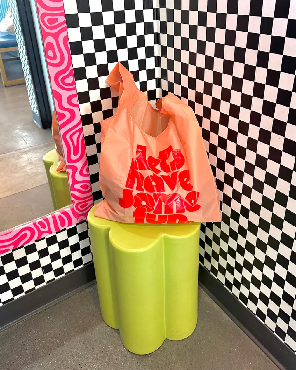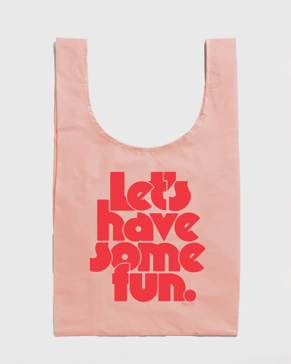 Q: What is super lightweight, can hold 50 lbs., and has a fun saying on it? A: This bag from Baggu! Seriously, it can hold fifty pounds. That’s like two and a half watermelons. (FYI: We looked that up. We didn’t know a watermelon’s weight offhand.)