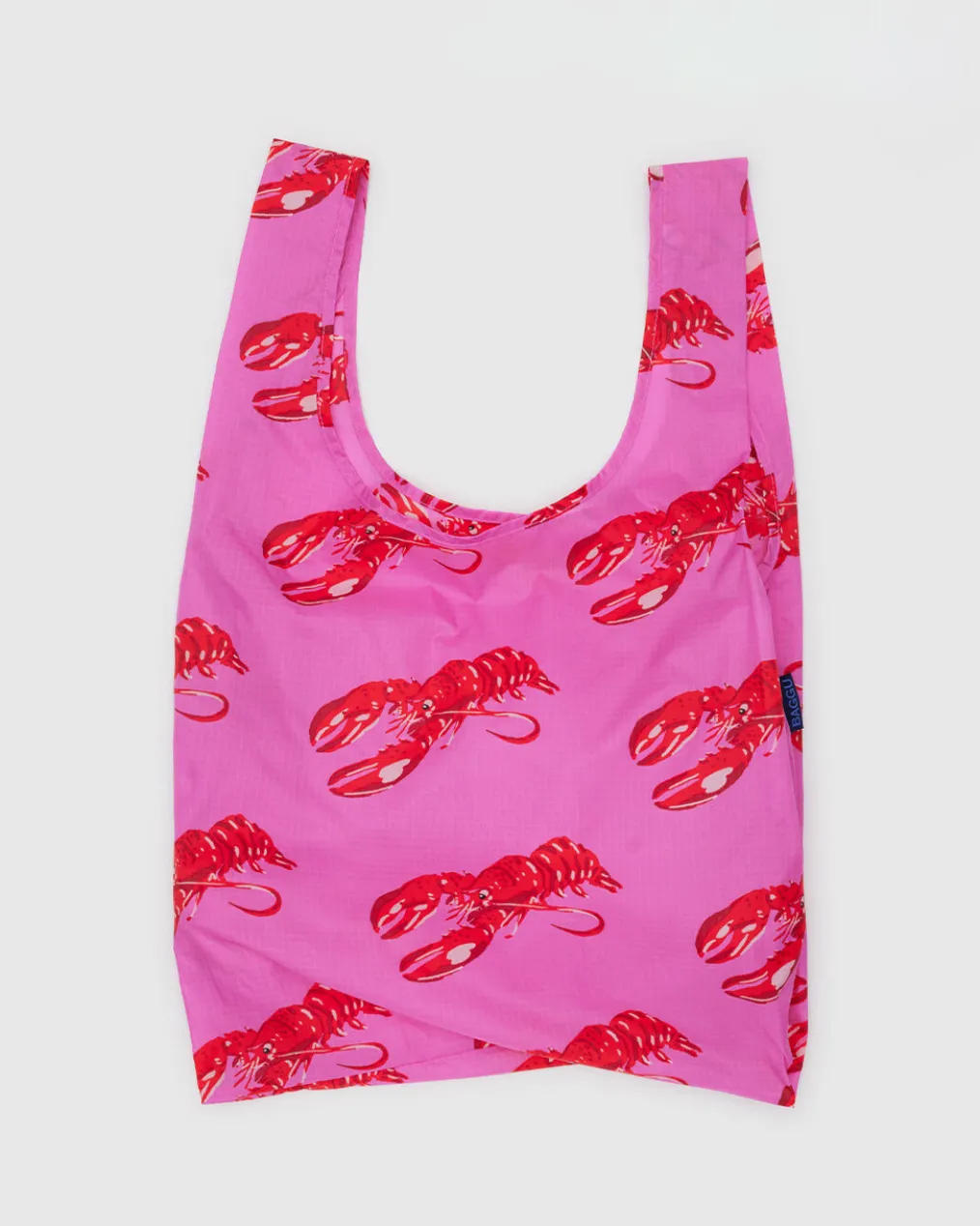 Q: What is super lightweight, can hold 50 lbs., and has a fun print? A: This bag from Baggu! Seriously, it can hold fifty pounds. That’s like two and a half watermelons. (FYI: We looked that up. We didn’t know a watermelon’s weight offhand.)