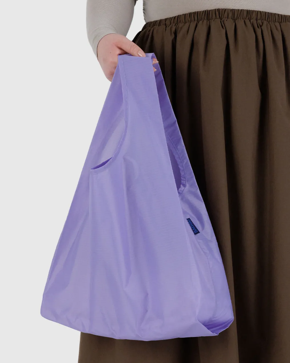 Q: What is super lightweight, can hold 50 lbs., and has great wisteria color? A: This bag from Baggu! Seriously, it can hold fifty pounds. That’s like two and a half watermelons. (FYI: We looked that up. We didn’t know a watermelon’s weight offhand.)