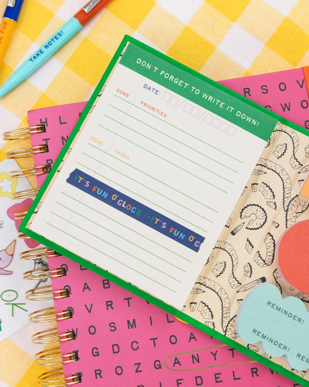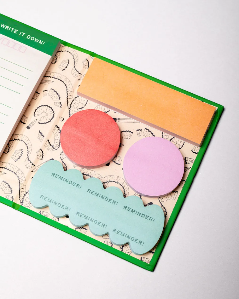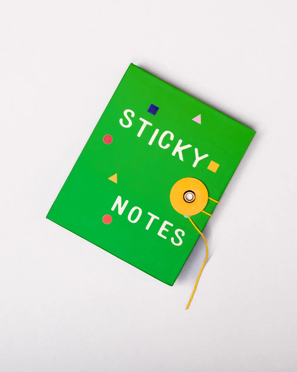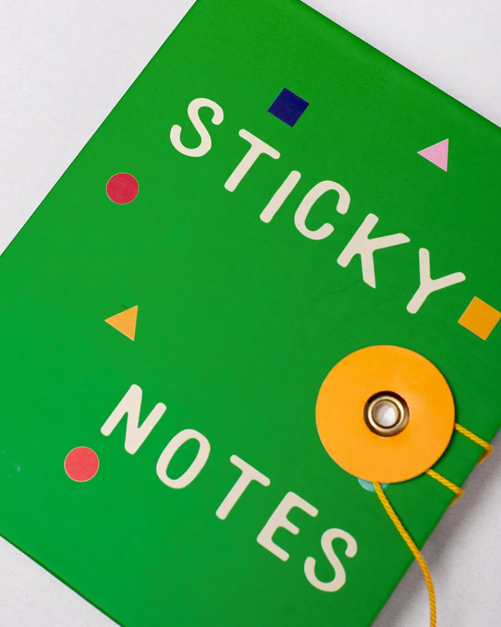 Your secret weapon to taking notes. Our sticky note folio comes with 75 sheets of rectangle sticky notes, circle sticky notes, and more — all wrapped up in a convenient book with string closure.