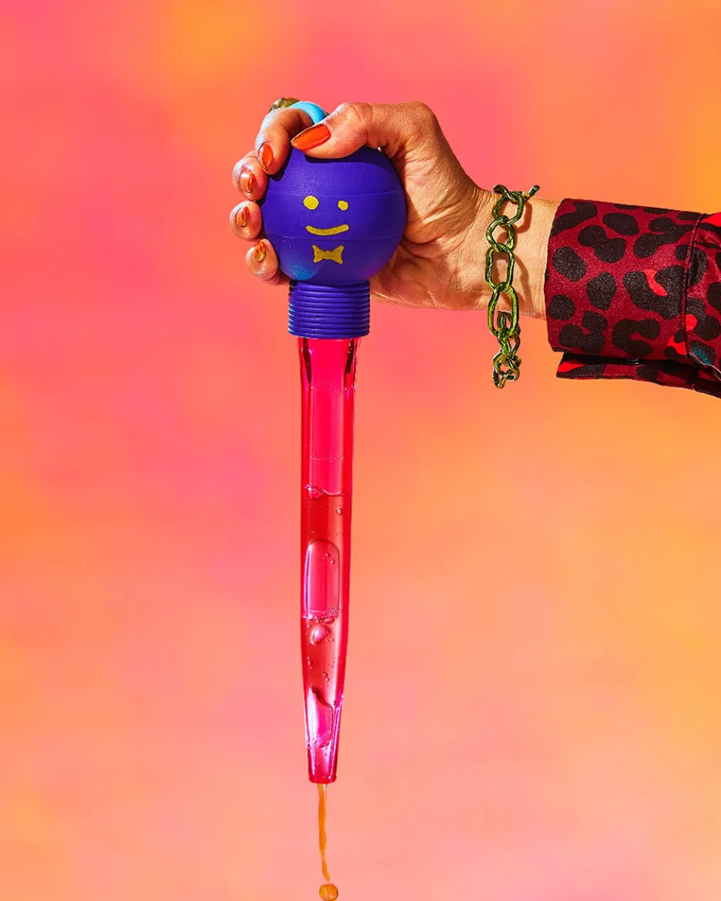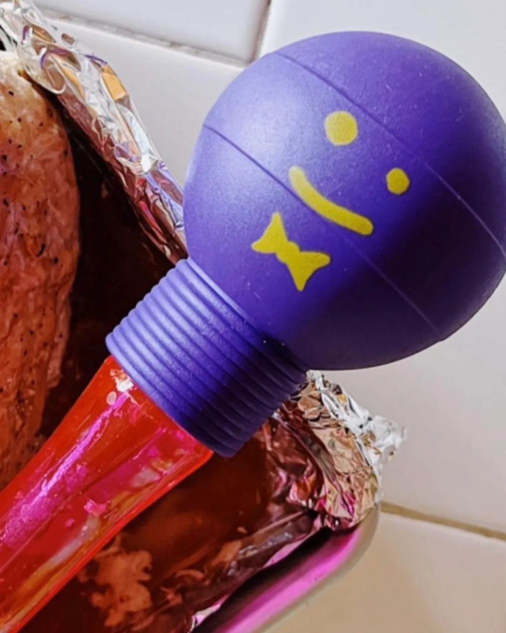Bring a little extra happiness to the holidays (and beyond) with The Baster. So cute you just want to pinch their cheeks, which is luckily all you need to do for them to work. Purple rubber bulb and a translucent pink plastic tube.