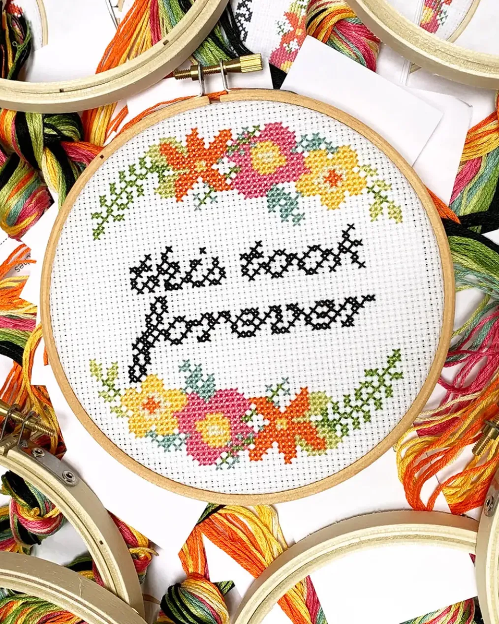 Cross stitching is a slow and meticulous process, but the finished product is absolutely worth the wait. Revel in your hard work with the This Took Forever DIY cross stitch kit. Kit includes everything you need to stitch up your own cross stitch, with step-by-step instructions for those new to stitching.