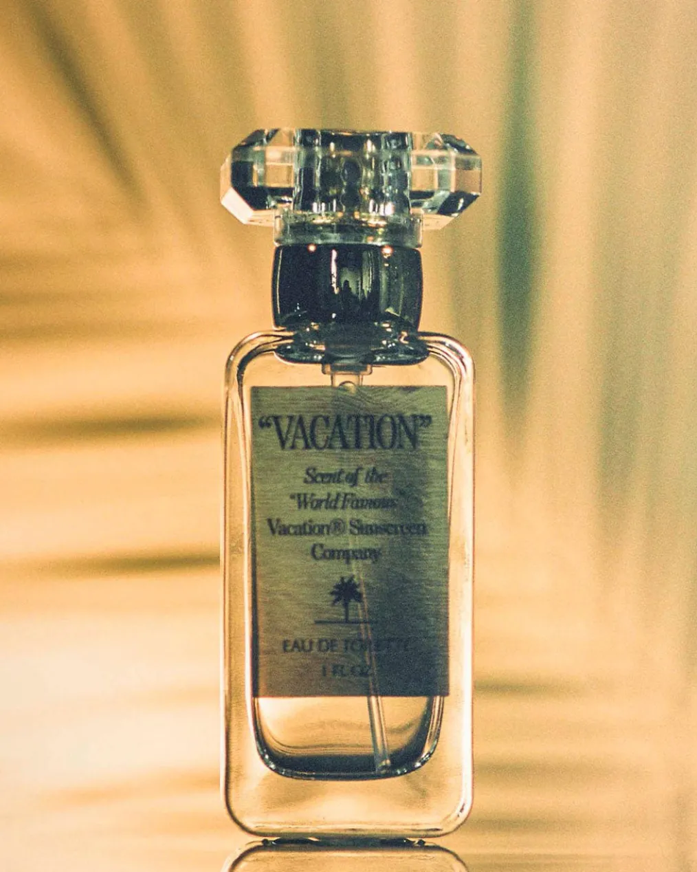 “VACATION” by Vacation® for all genders, immerses the wearer in the inimitable “Sunscreen Experience” wherever they may be. Mixing classic sunscreen notes – coconut, banana, pineapple, orange blossom, with classic poolside notes – pool water, pool toy, swimsuit lycra, “VACATION” is your best poolside memories, sprayable on demand.
