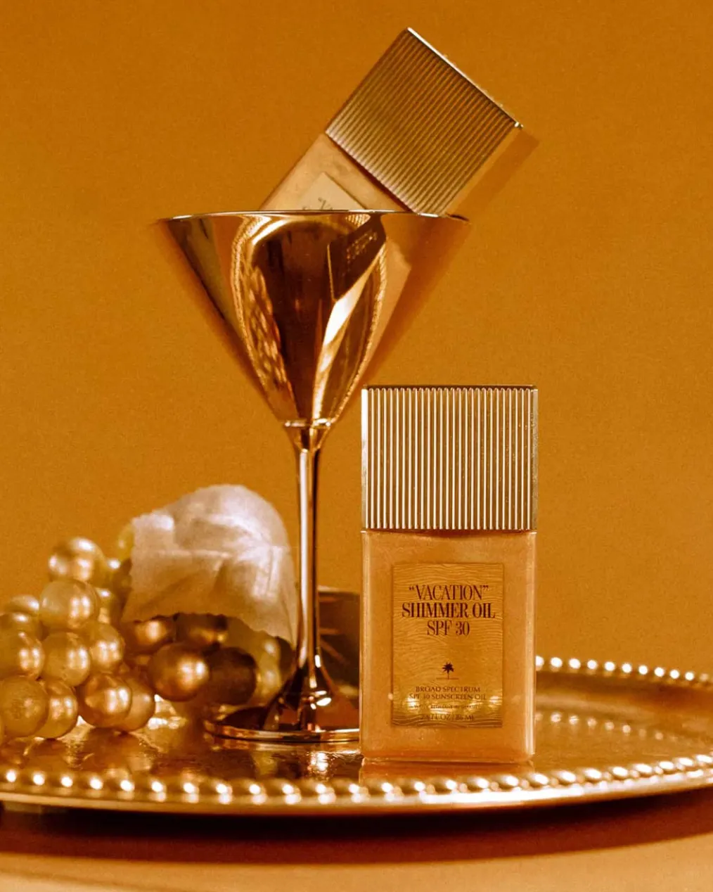 The crown jewel in the Vacation® Sunscreen family, Shimmer Oil features two types of illuminating gold mica shimmer combined with Vacation’s award-winning signature scent, SPF 30 protection and luscious natural oils to deliver “show stopping” radiance that will turn any poolside moment into a dazzling red carpet event.