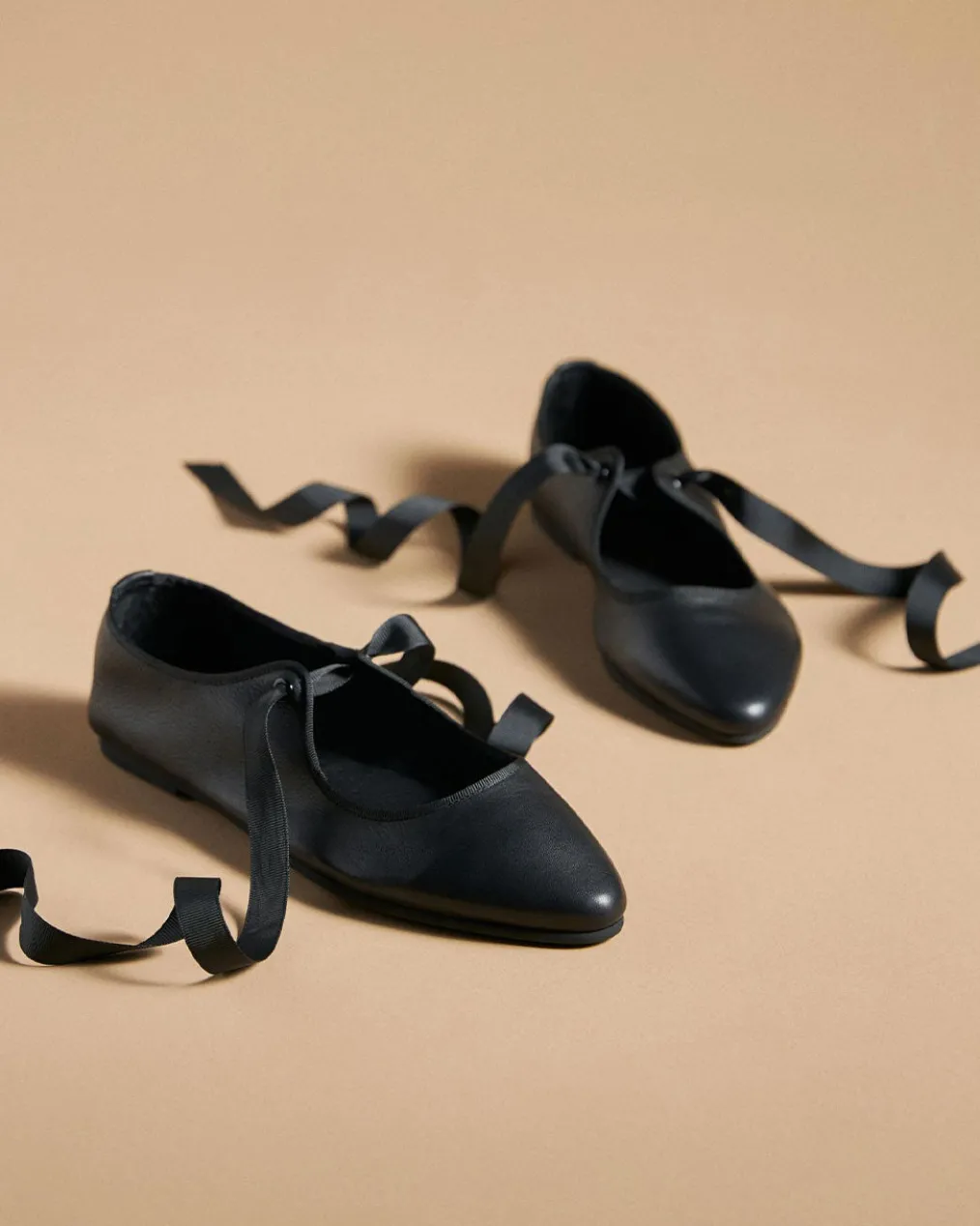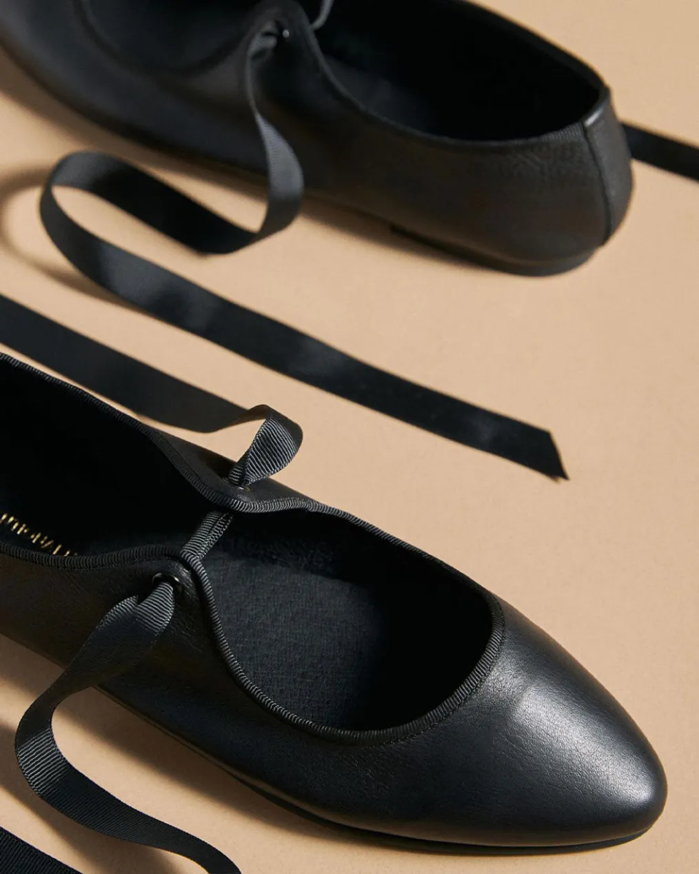 Sugary sweet, and right on time! Meet VALLEY, the keyhole, perfectly almond toe ballet flat of your dreams. Soft pebbled leather, the perfect ribbon tie and the ultimate options for styling and charm. A classic is born.