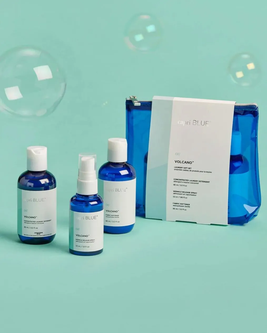 Fight static, stains and wrinkles in style with thisVolcanoLaundry Gift Set! It’s perfect for trial and travel, so treat your clothes and fabrics to non-toxic, cruelty-free formulas at home or on the go! This set features Concentrated Laundry Detergent, Fabric Softener and Wrinkle Release Spray in the iconicVolcanofragrance.