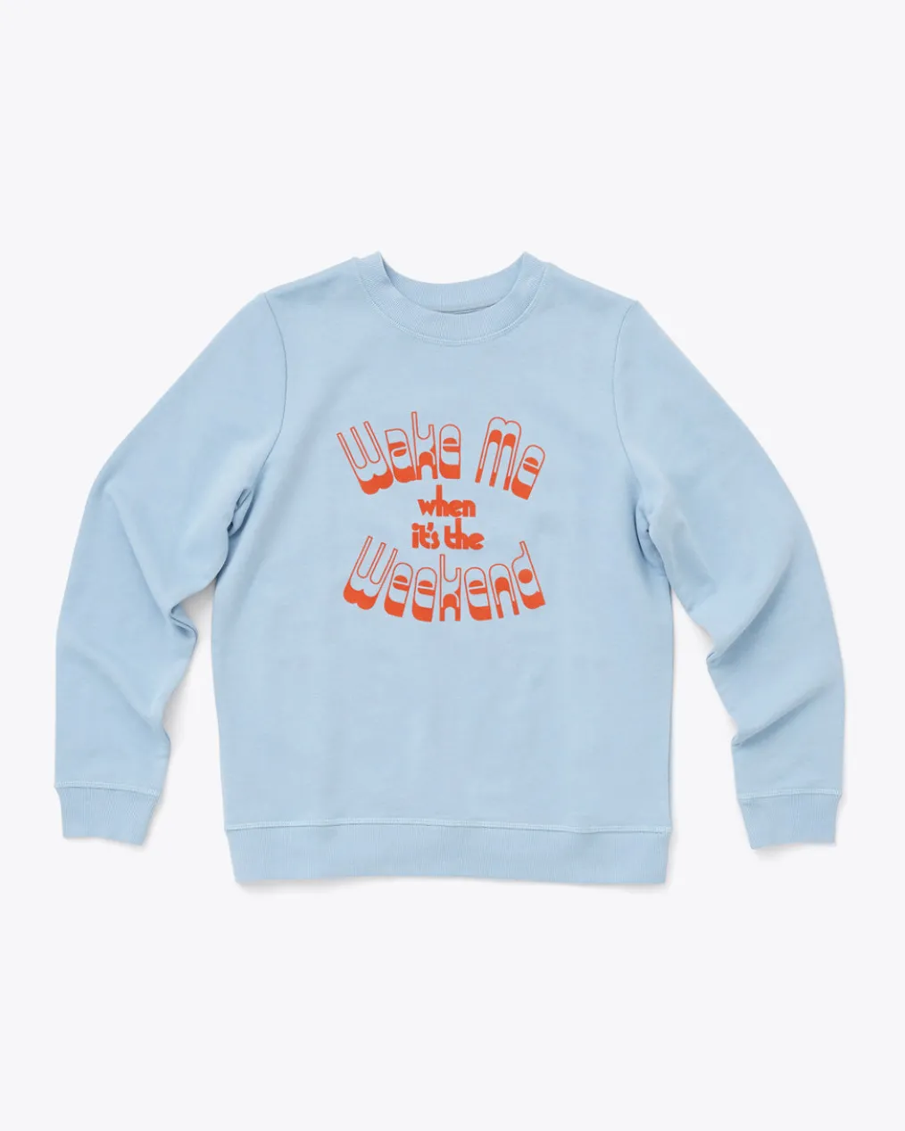 A sweatshirt that combines two of our greatest loves: weekends and sleeping. It’s also incredibly soft, incredibly cozy, and has cool flocked lettering.