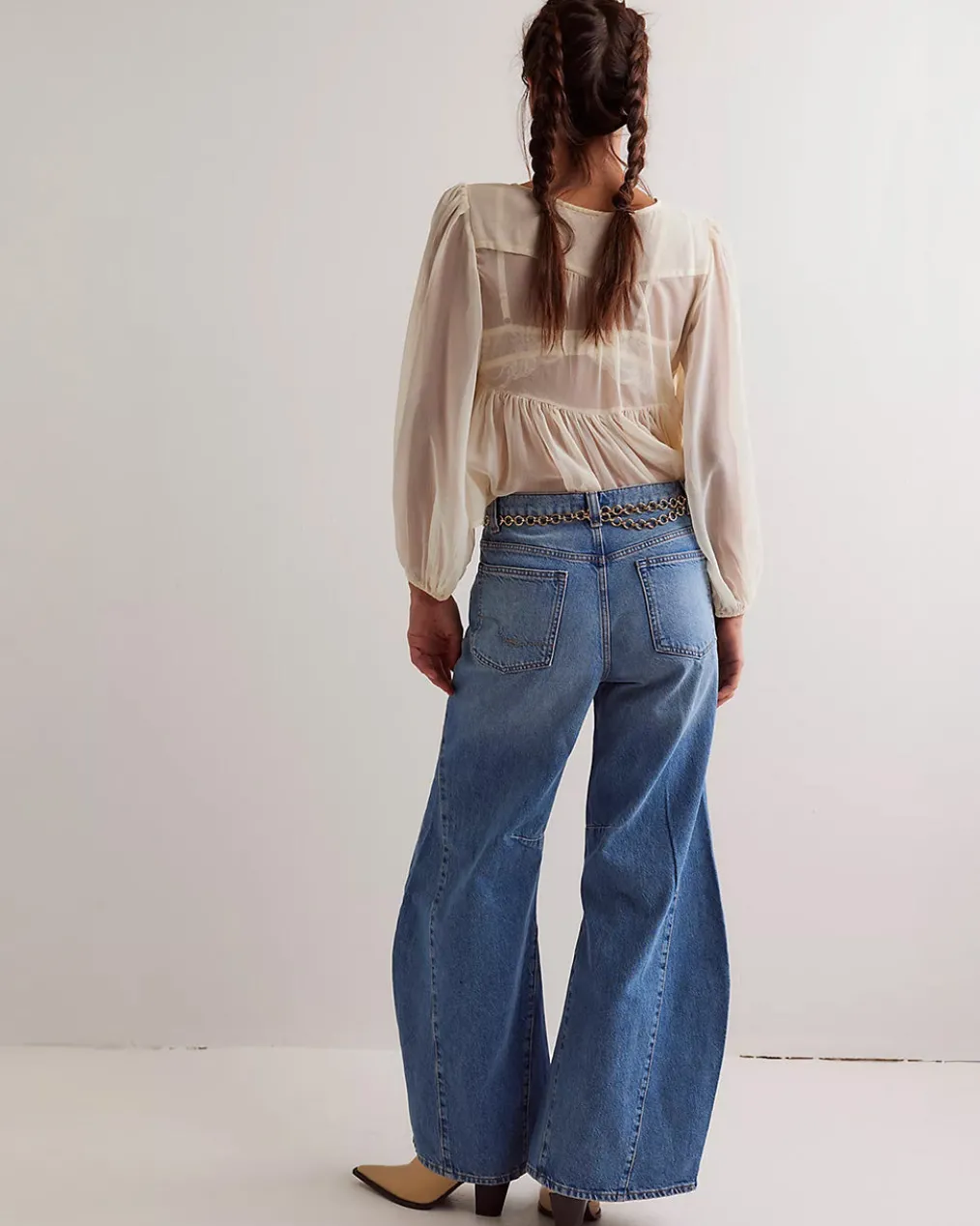 - Fit:High-rise, slouchy flare silhouette