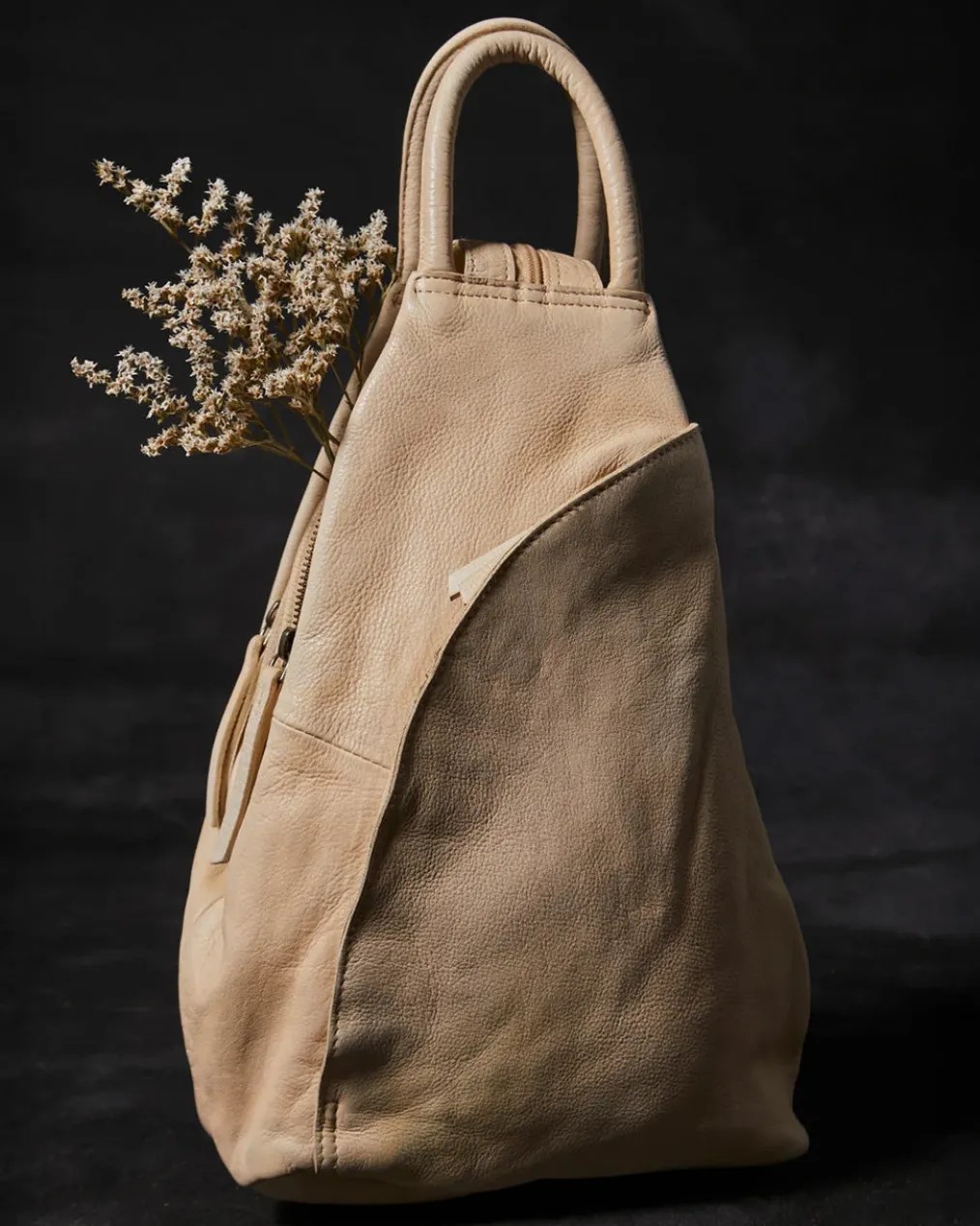 Designed to be slung over your shoulder or styled as a backpack, this soft leather sling bag from theWe The Freecollection features zippered details and defined top handles for added classic shape